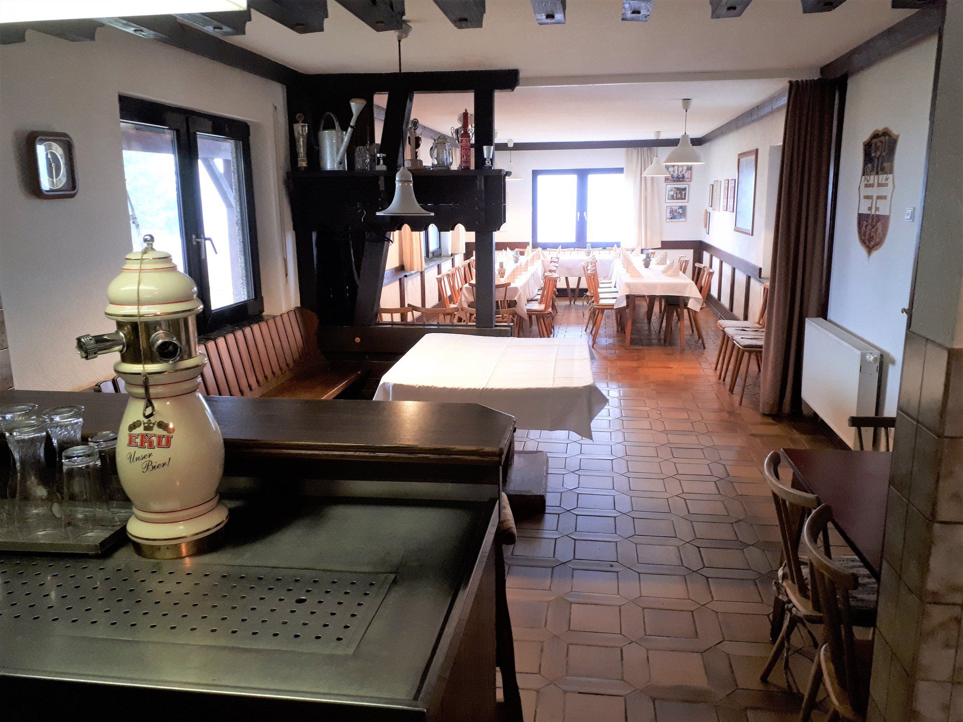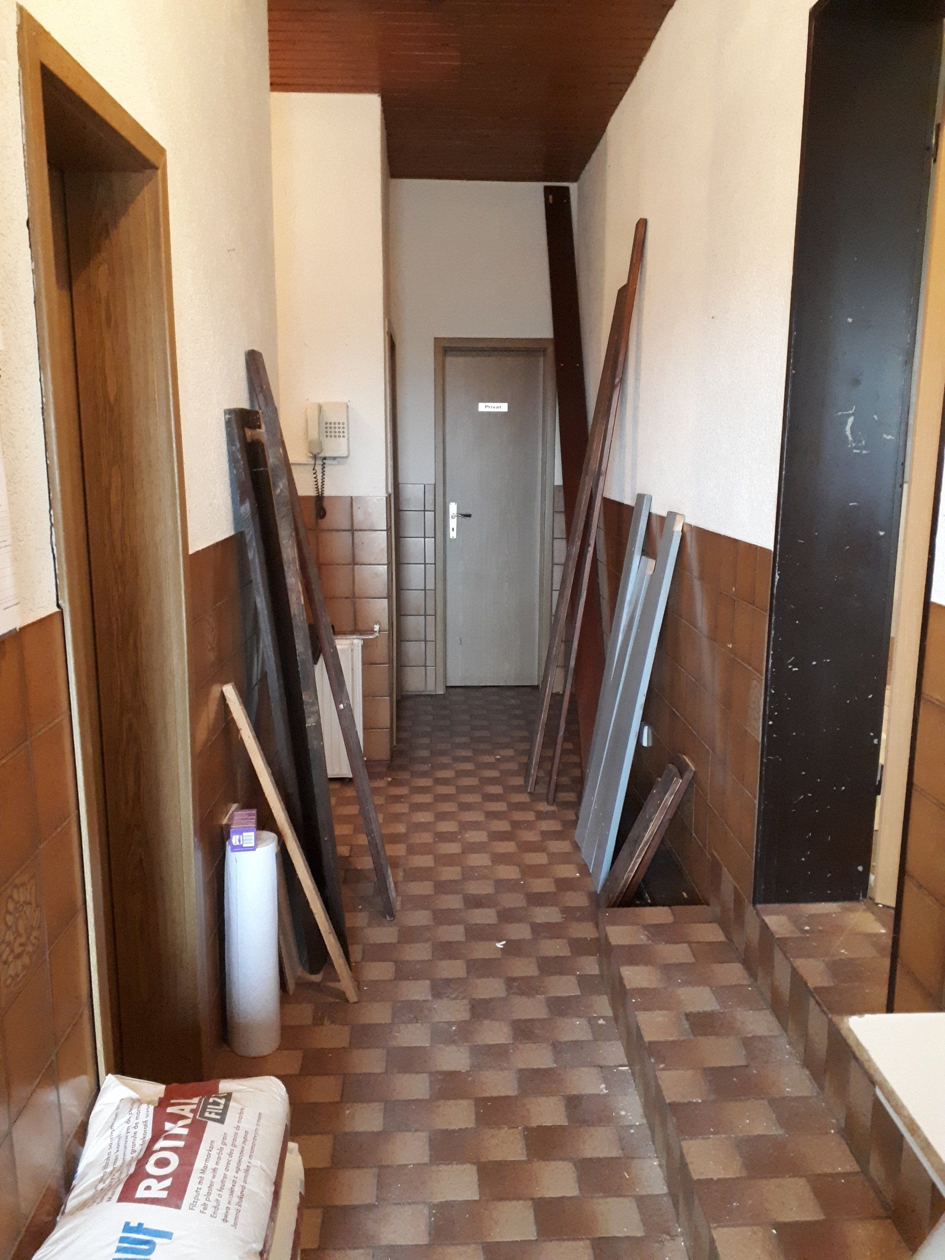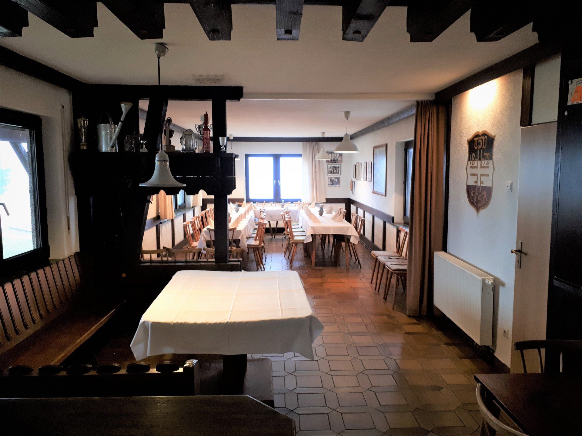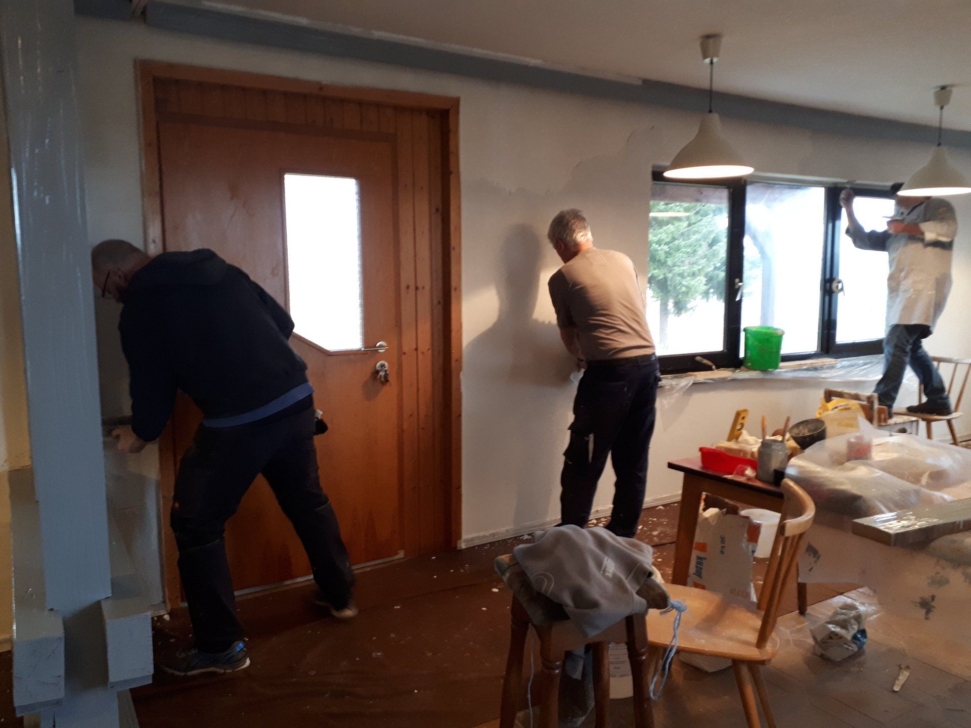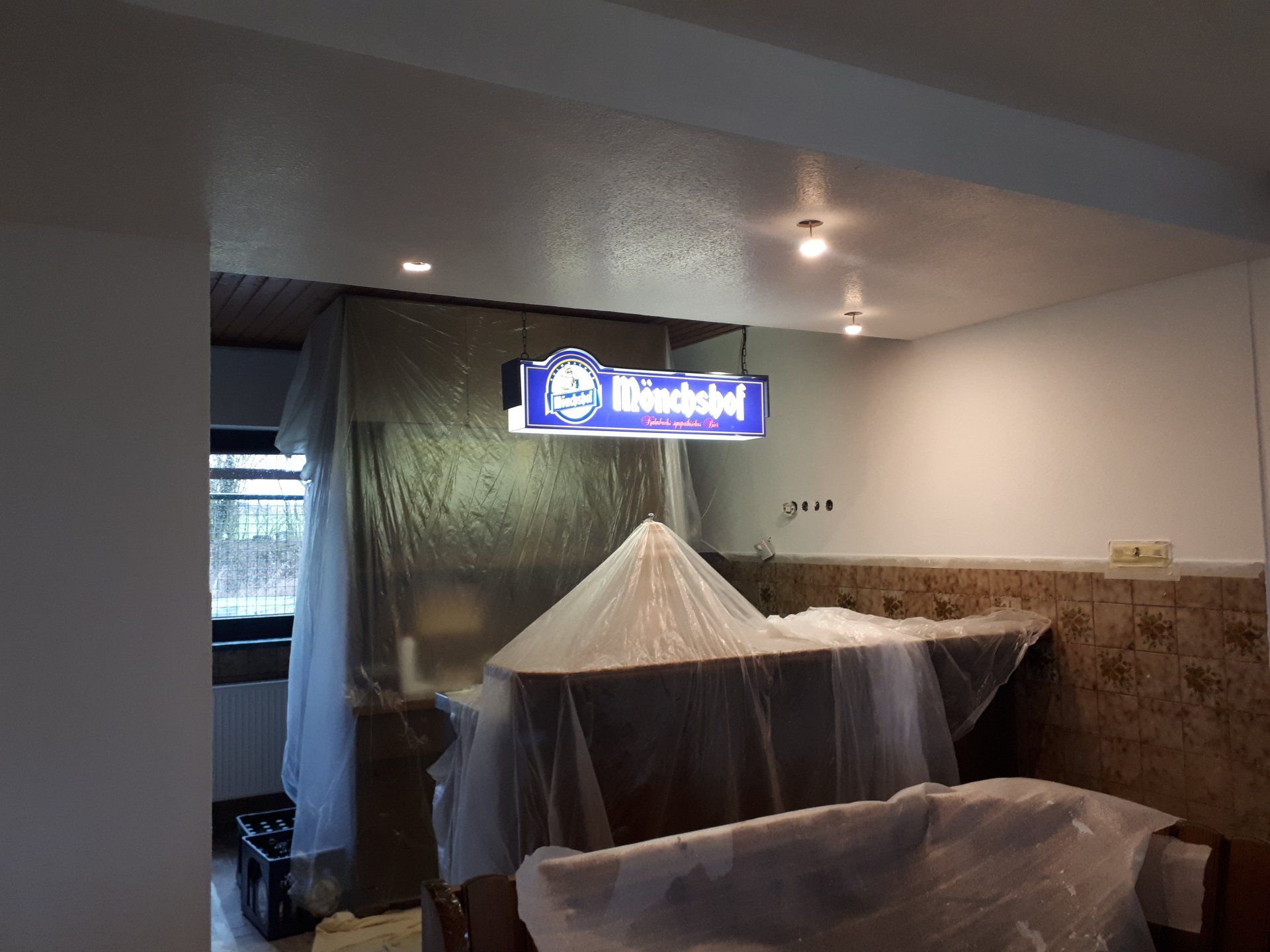Wie bei jeder Renovierung, musste am Ende mehr gemacht werden als gedacht. Es wurden Tapeten entfernt, Wände verputzt und gestrichen, im Thekenbereich Balken entfernt und LED Spots installiert. Außerdem sind ein neuer Sicherungskasten, Pokalschrank und eine neue Küche eingezogen. Und natürlich viele, viele Kleinarbeiten...