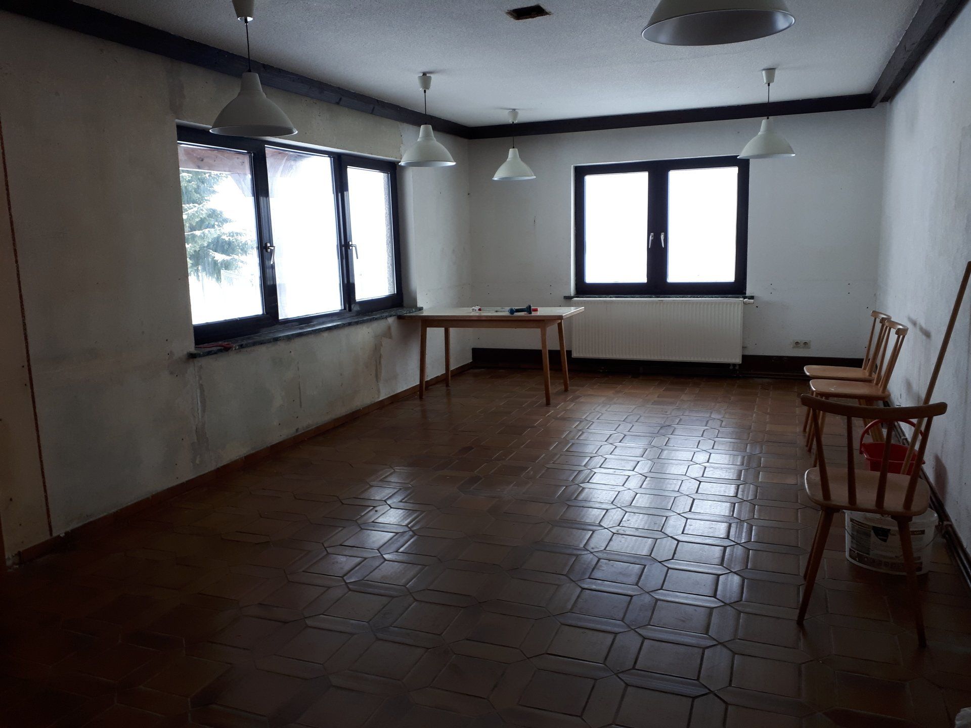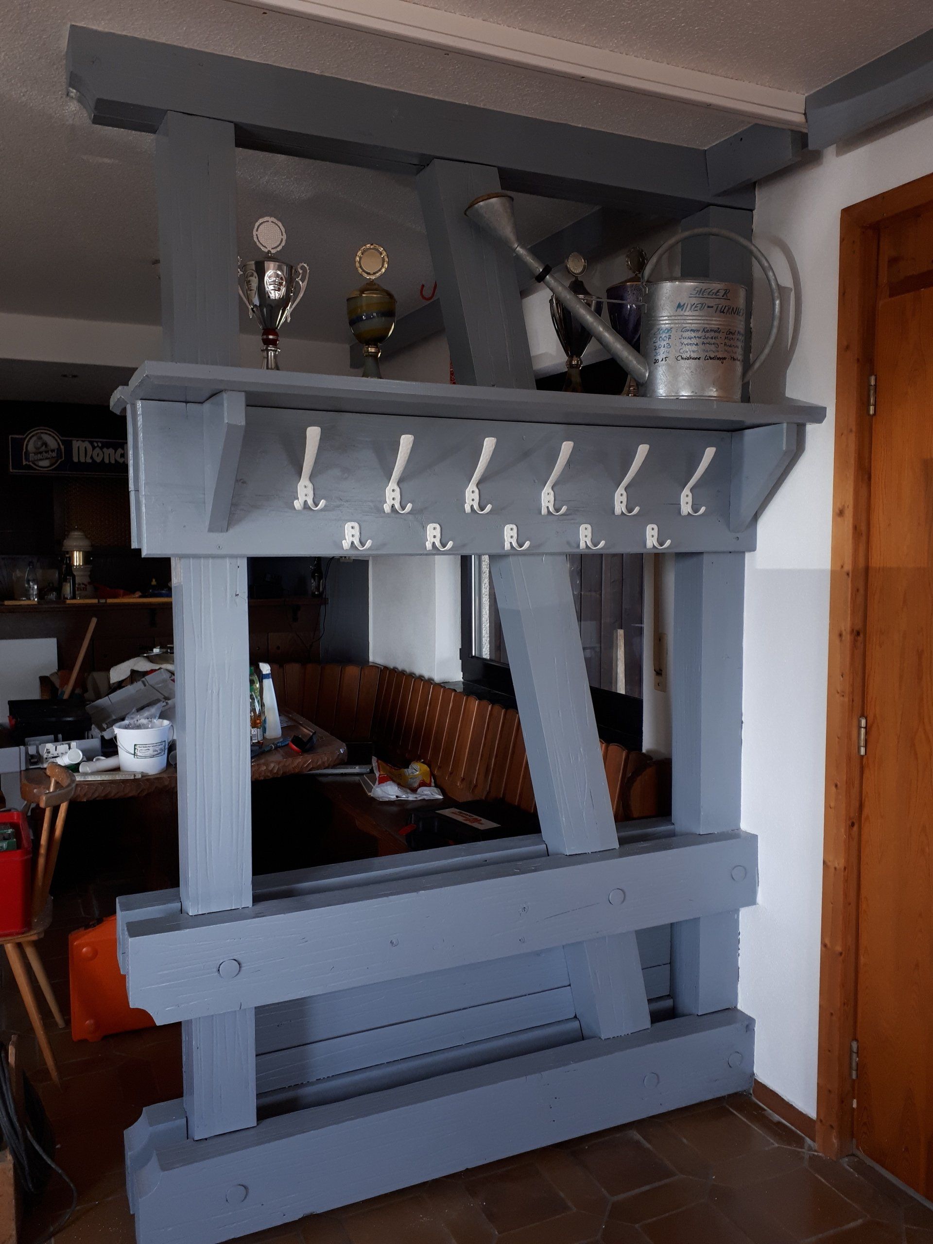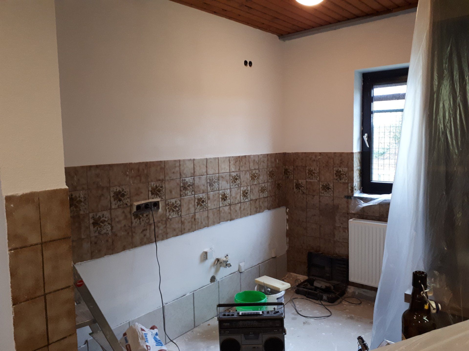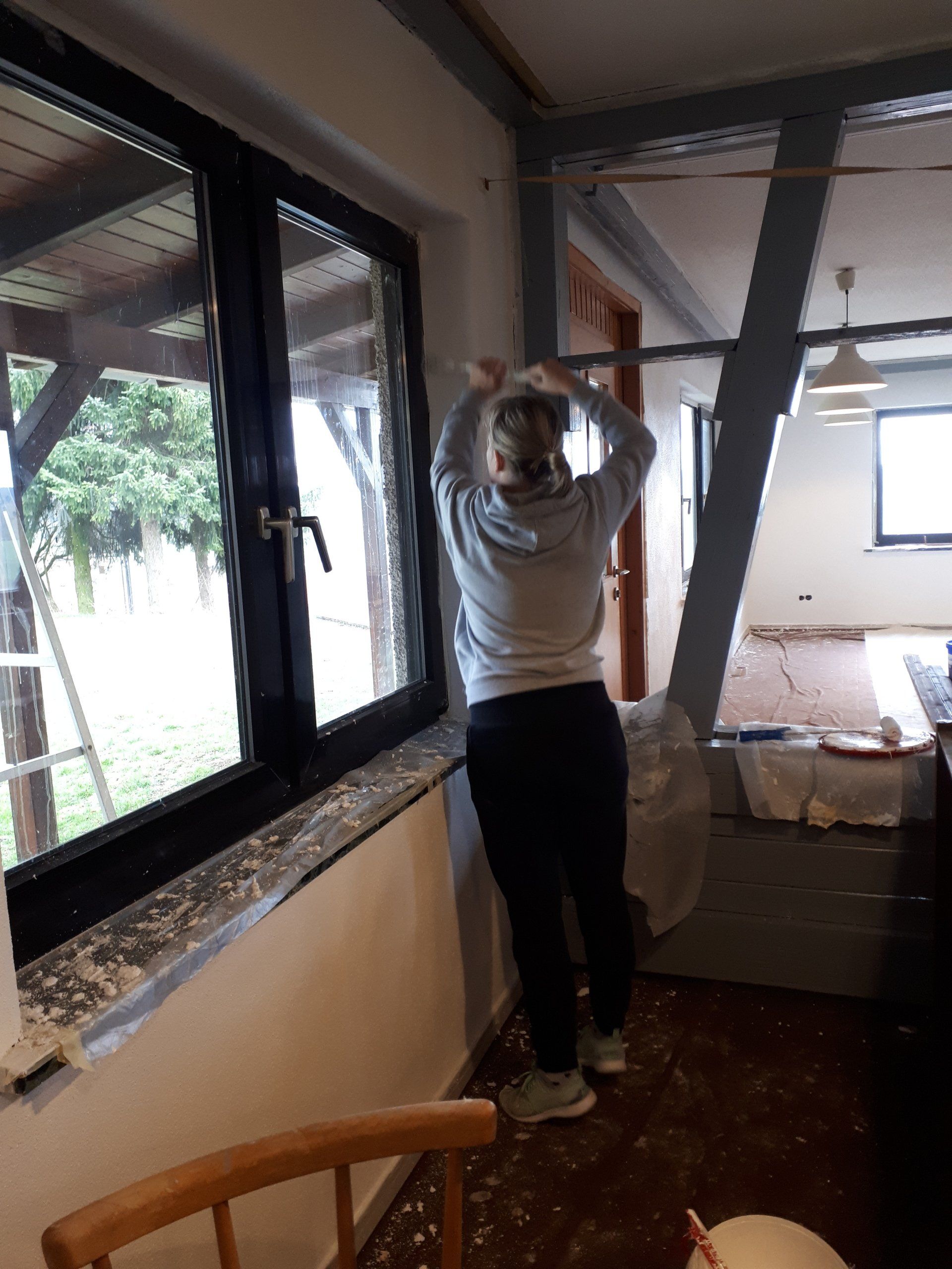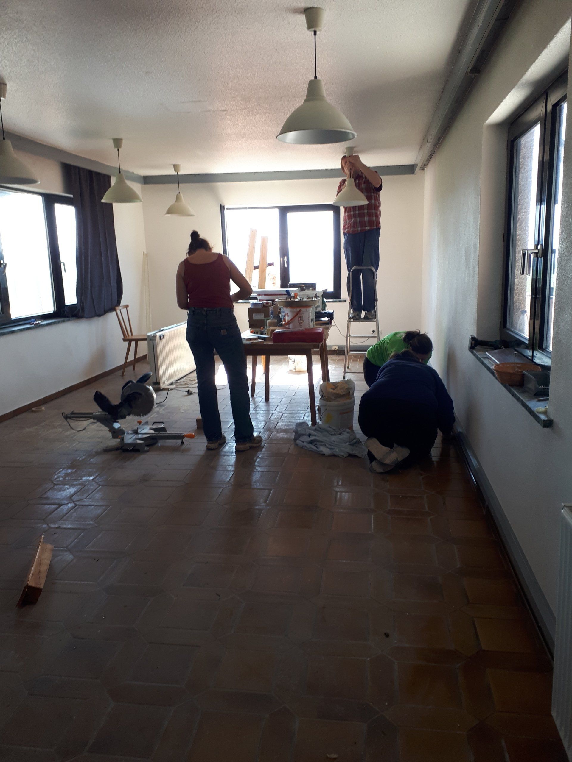 Wie bei jeder Renovierung, musste am Ende mehr gemacht werden als gedacht. Es wurden Tapeten entfernt, Wände verputzt und gestrichen, im Thekenbereich Balken entfernt und LED Spots installiert. Außerdem sind ein neuer Sicherungskasten, Pokalschrank und eine neue Küche eingezogen. Und natürlich viele, viele Kleinarbeiten...