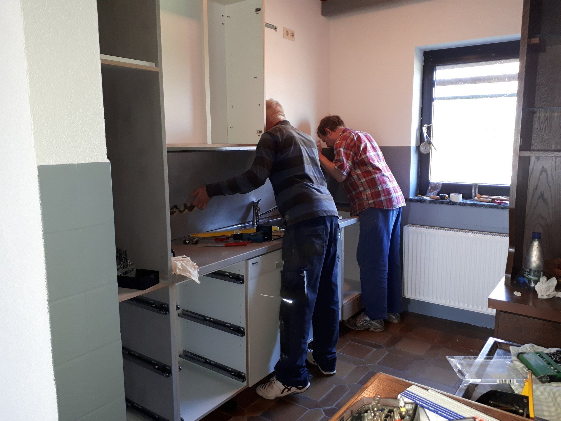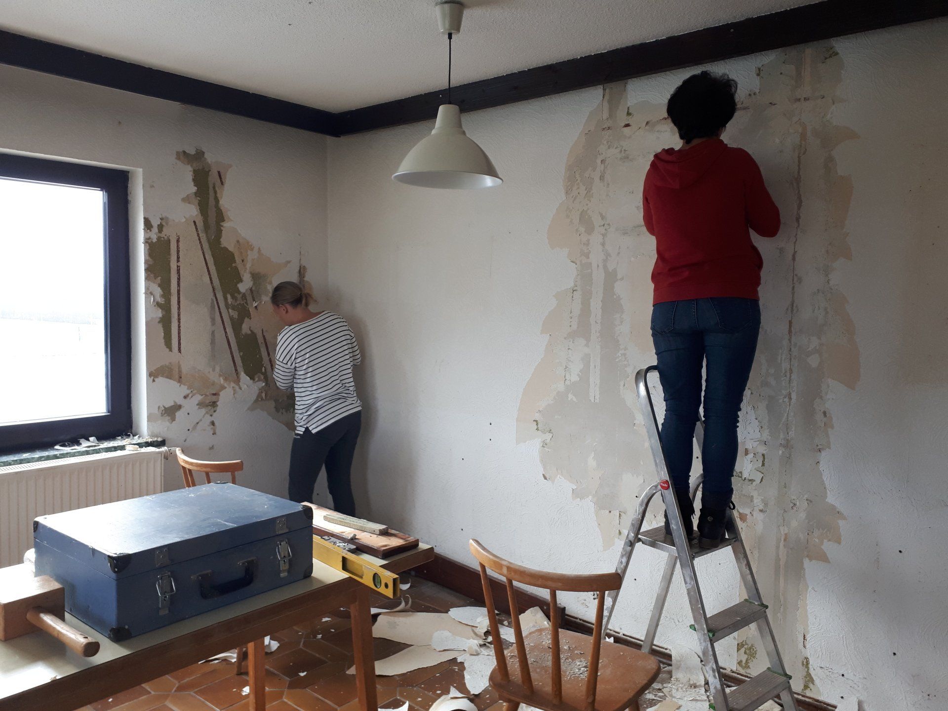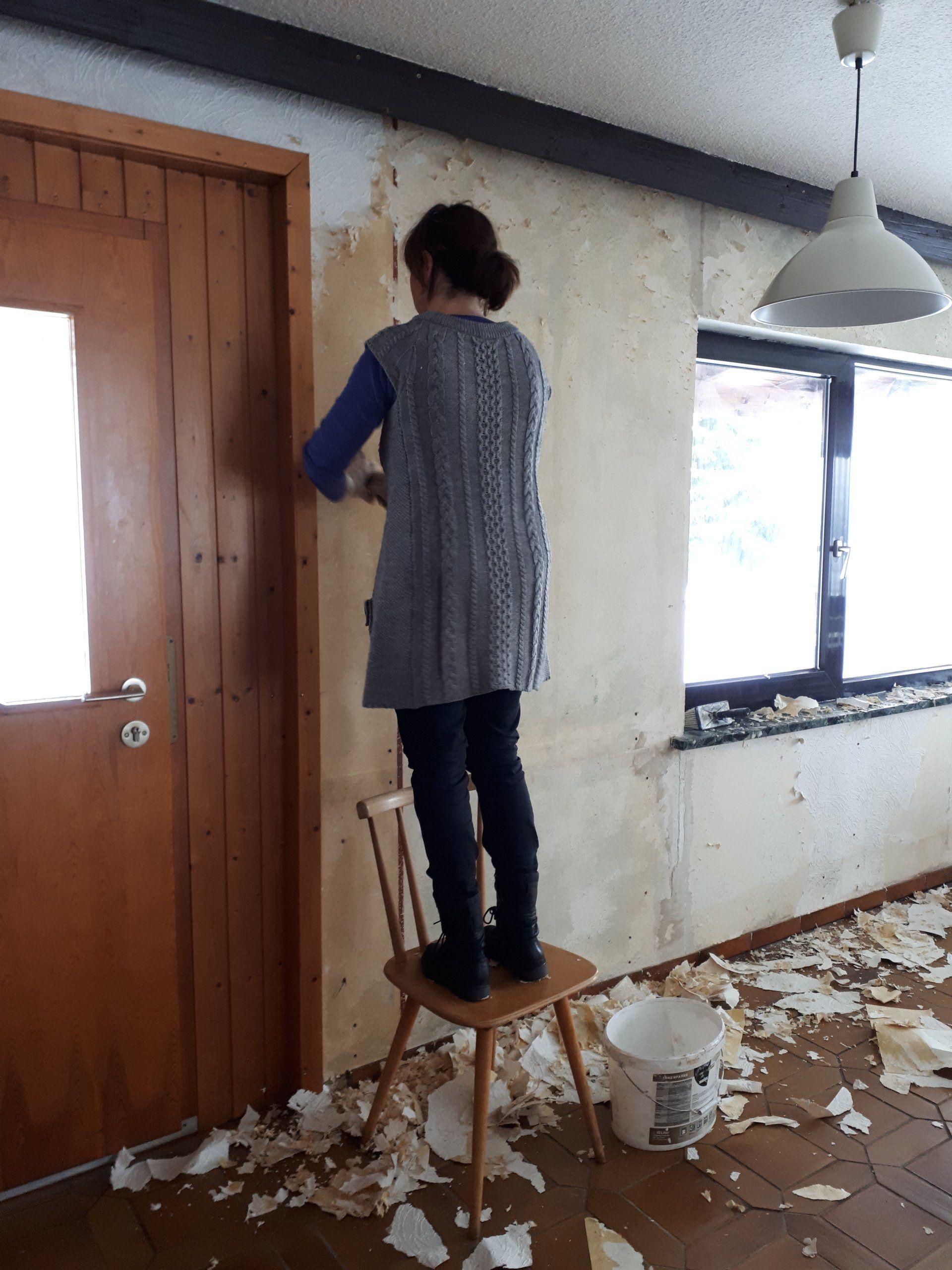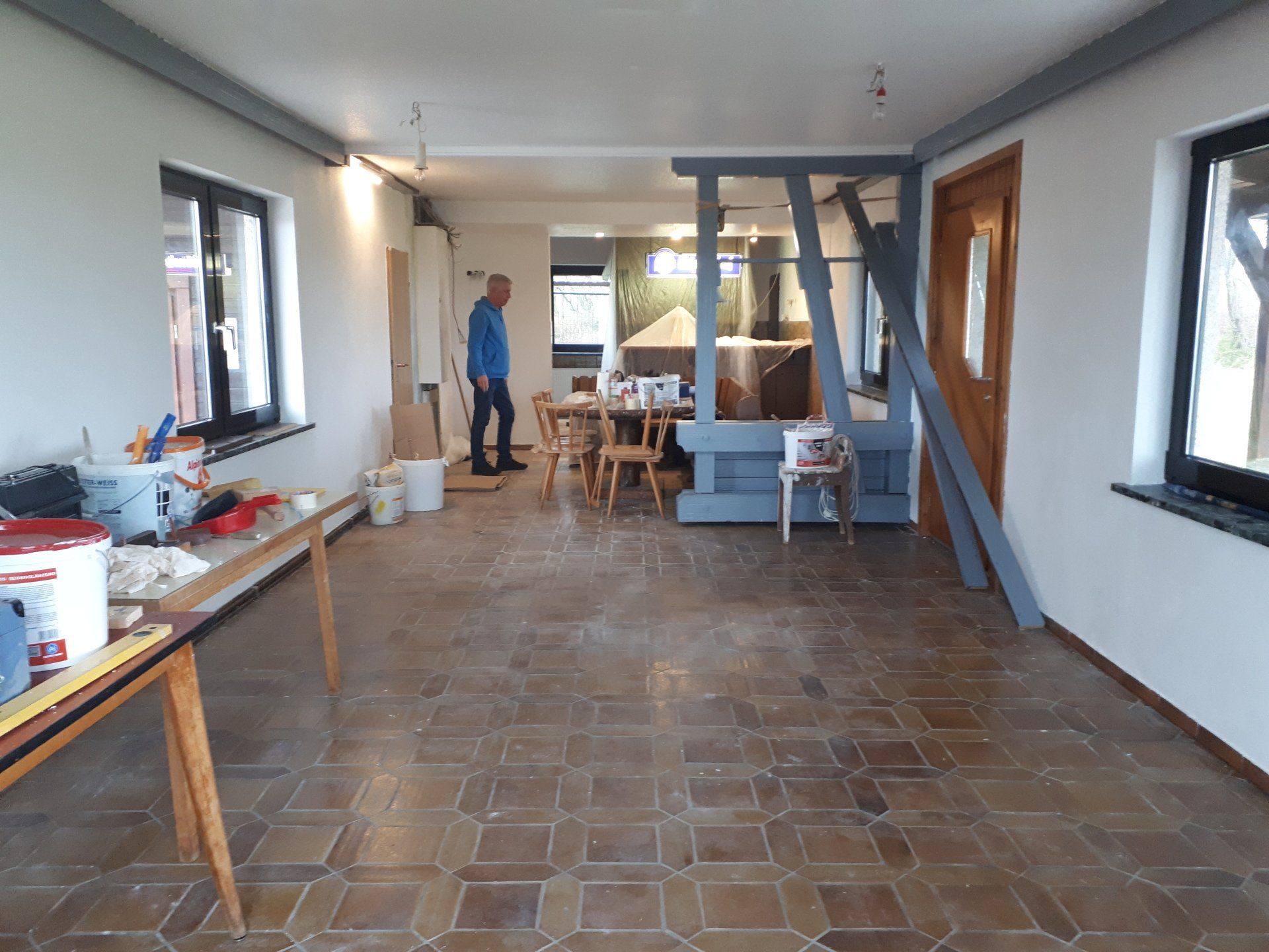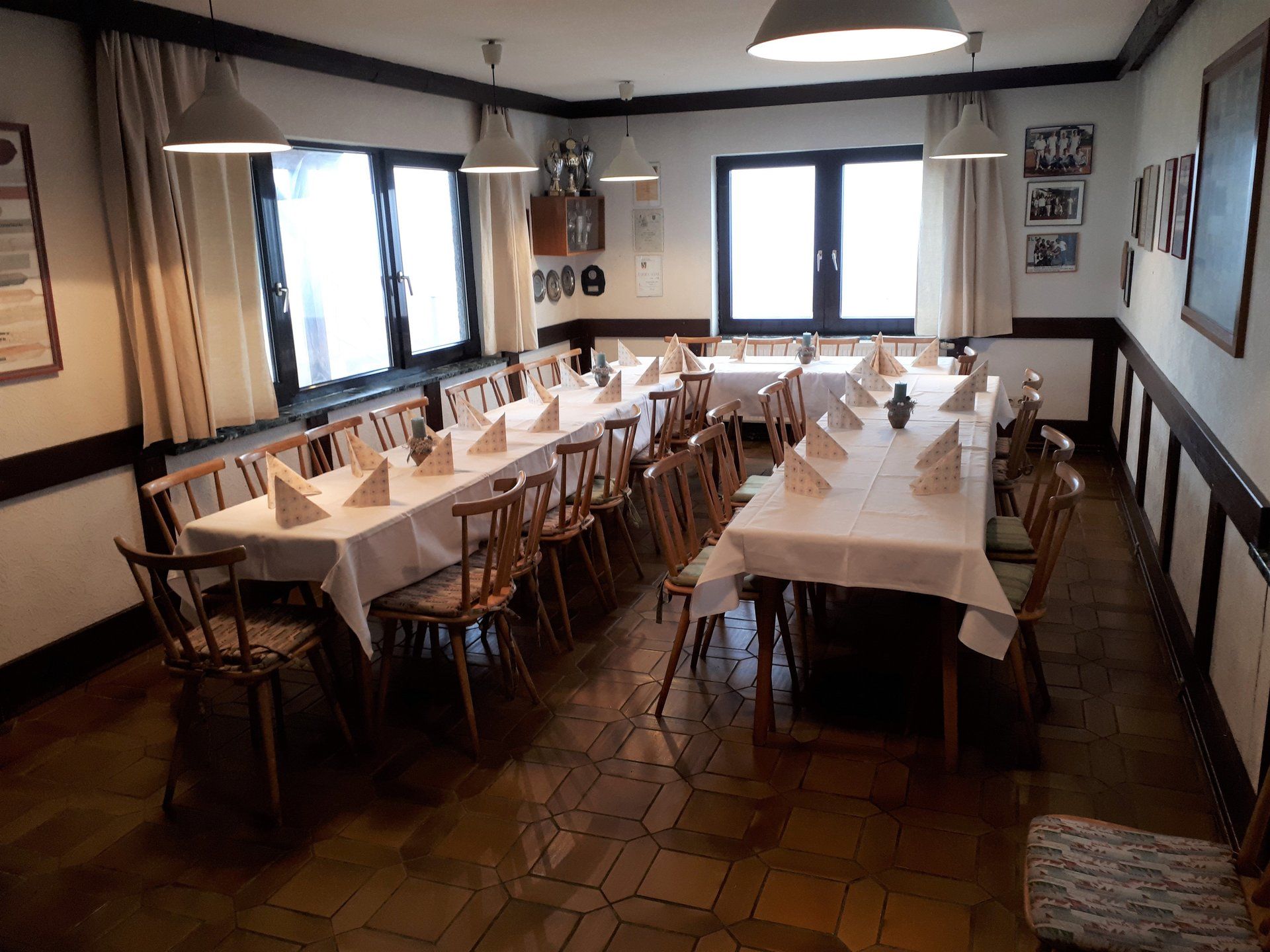 Wie bei jeder Renovierung, musste am Ende mehr gemacht werden als gedacht. Es wurden Tapeten entfernt, Wände verputzt und gestrichen, im Thekenbereich Balken entfernt und LED Spots installiert. Außerdem sind ein neuer Sicherungskasten, Pokalschrank und eine neue Küche eingezogen. Und natürlich viele, viele Kleinarbeiten...